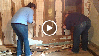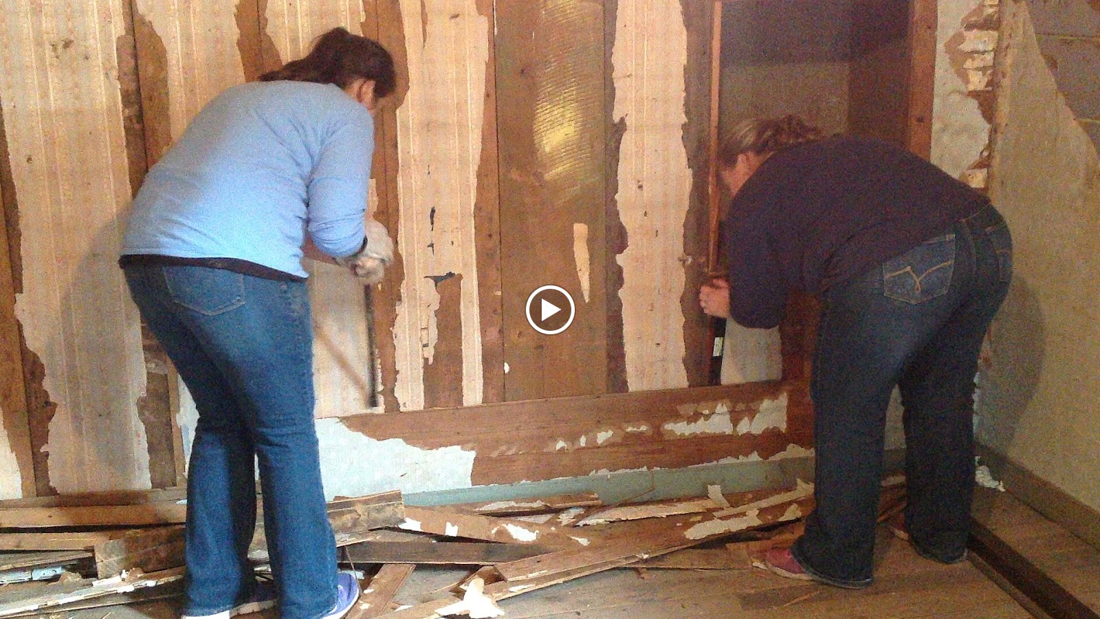 Later, we headed upstairs again. This time it was girl power! We were tearing boards off of the walls to prepare for insulation.