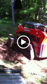 Superman removed some pieces of wood from some stumps where the driveway is going to be.