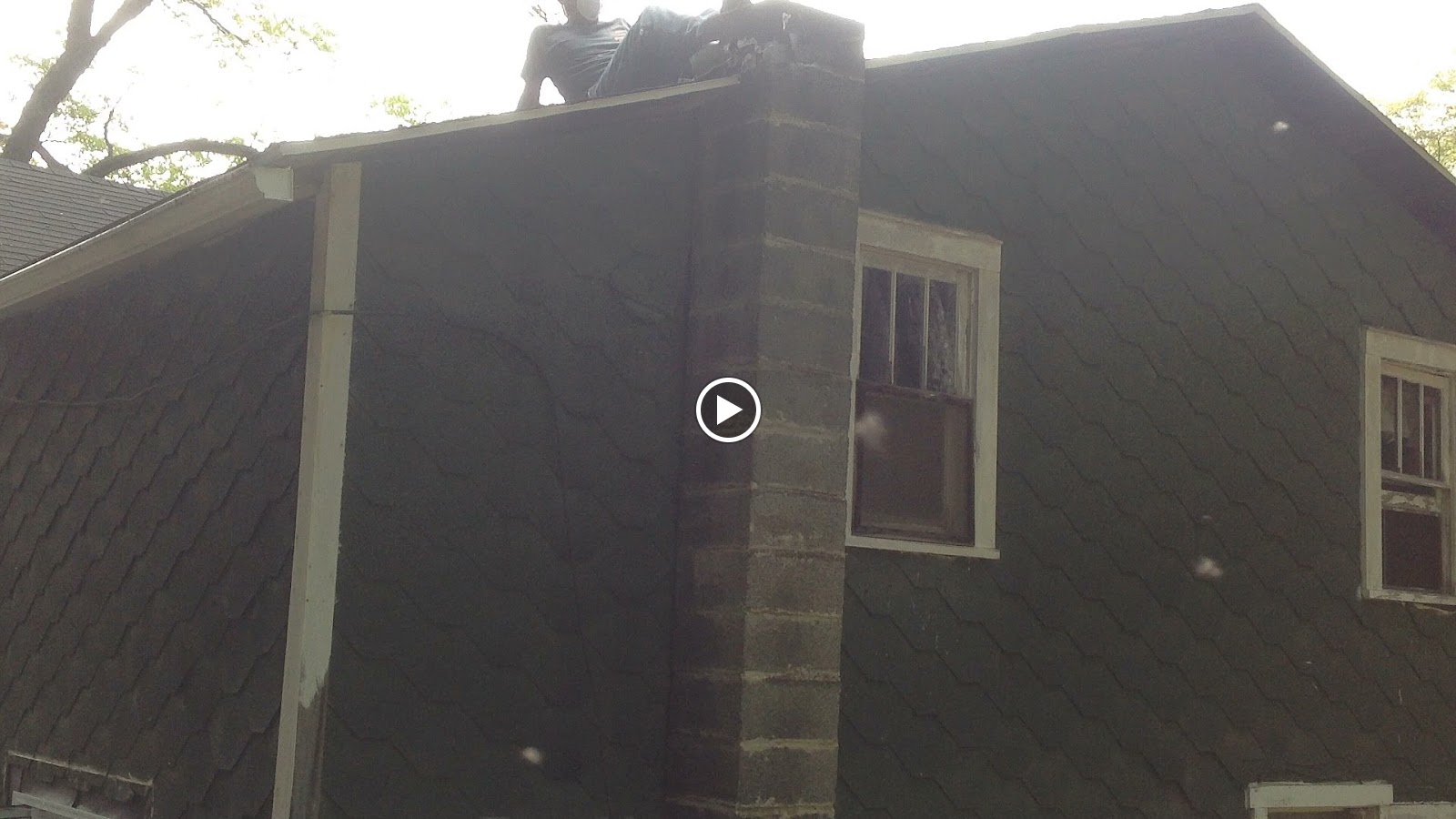 Next, they took down the chimney. The house had two chimneys; one in the living room and one outside the kitchen. The one outside the kitchen was used for a cook stove back in the day. We had no intention of using a cook stove, so the chimney needed to come down. Superman thought it would be a long process, guess again.