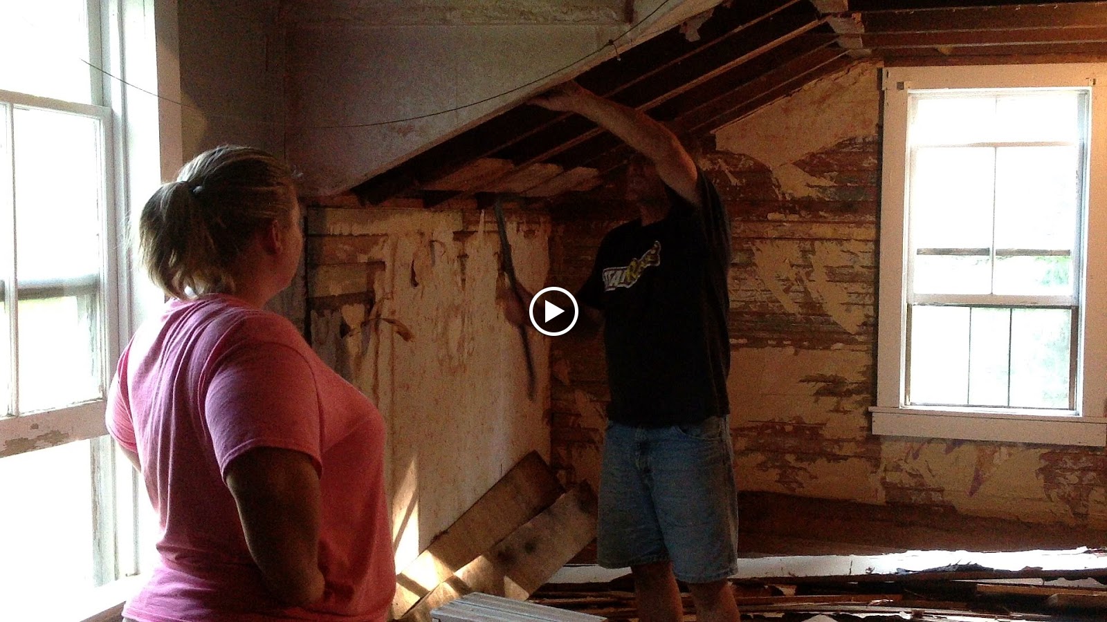 Then John and AJ headed upstairs to tear out the wall between our room and John and Sunshine's room. AJ pulled nails out of boards for probably an hour or more. After the wall was down, I stood looking at the large open space. John suggested that it would make a great master suite. For a fleating moment (two days) I thought about that possibility. Then I decided it was better to have the extra bedroom. But it was fun dreaming about it.