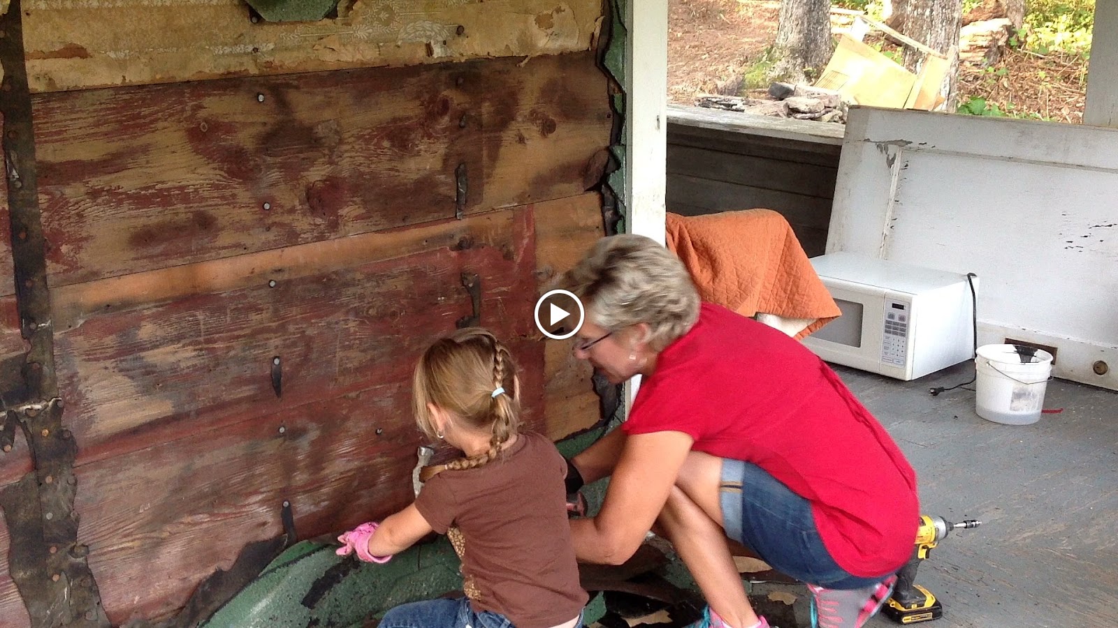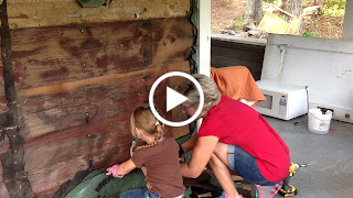 It's been a long time joke at our house; Superman says, "If the barn needs paintin' ", referring to me wearing makeup! lol Well this time it was the porch that needed paintin'. Ladybug and her mama came up to help. And "Uncle" came for the weekend! We got busy on the porch while Superman and Randy tore up the kitchen floor; literally.
